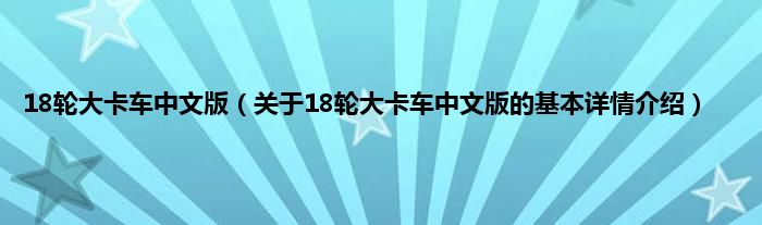 18轮大卡车中文版(关于18轮大卡车中文版的基本详情介绍)