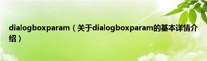 本文关于dialogboxparam的基本详情介绍就讲解完毕,希望对大家有所帮助。