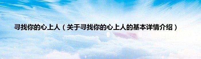 大家好我是小蝌蚪,寻找你的心上人,关于寻找你的心上人的基本详情介绍很多人还不知道,那么现在让我们一起来看看吧!