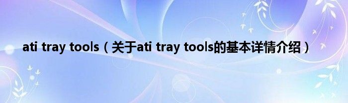 本文关于ati tray tools的基本详情介绍就讲解完毕,希望对大家有所帮助。