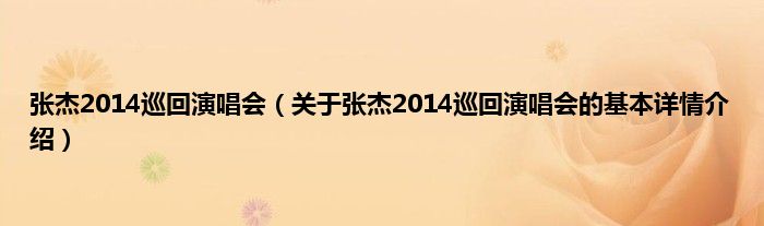 本文关于张杰2014巡回演唱会的基本详情介绍就讲解完毕,希望对大家有所帮助。