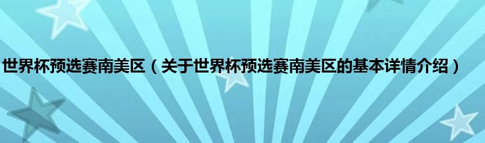 本文关于世界杯预选赛南美区的基本详情介绍就讲解完毕,希望对大家有所帮助。