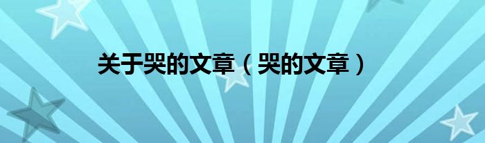 大家好,小问来为大家解答以上问题。关于哭的文章,哭的文章这个很多人还不知道,现在让我们一起来看看吧!