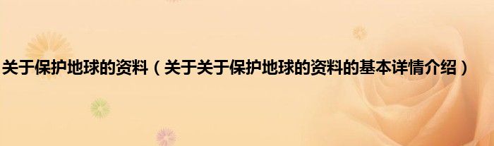 本文关于关于保护地球的资料的基本详情介绍就讲解完毕,希望对大家有所帮助。