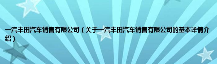 本文关于一汽丰田汽车销售有限公司的基本详情介绍就讲解完毕,希望对大家有所帮助。