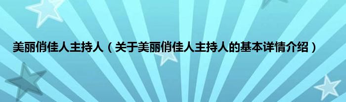 本文关于美丽俏佳人主持人的基本详情介绍就讲解完毕,希望对大家有所帮助。