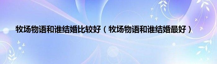 以上就是【牧场物语和谁结婚比较好,牧场物语和谁结婚最好】相关内容。