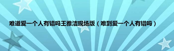 难道爱一个人有错吗王雅洁现场版(难到爱一个人有错吗)
