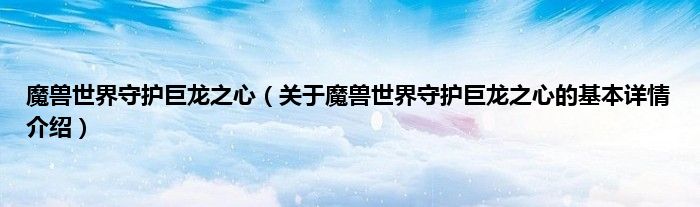 魔兽世界守护巨龙之心(关于魔兽世界守护巨龙之心的基本详情介绍)