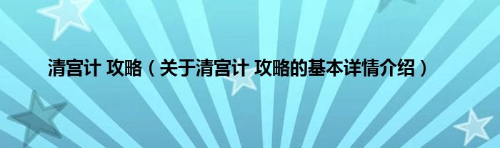 清宫计攻略(关于清宫计攻略的基本详情介绍)