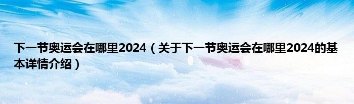 本文关于下一节奥运会在哪里2024的基本详情介绍就讲解完毕,希望对大家有所帮助。