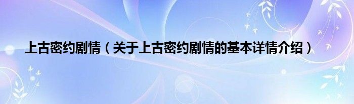 本文关于上古密约剧情的基本详情介绍就讲解完毕,希望对大家有所帮助。