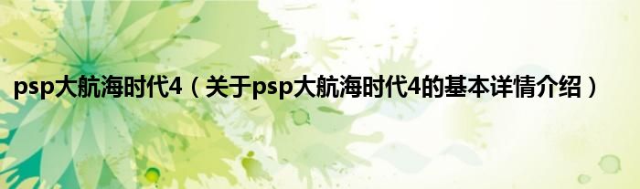 本文关于psp大航海时代4的基本详情介绍就讲解完毕,希望对大家有所帮助。