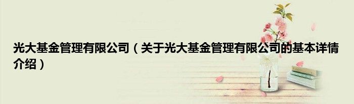 本文关于光大基金管理有限公司的基本详情介绍就讲解完毕,希望对大家有所帮助。
