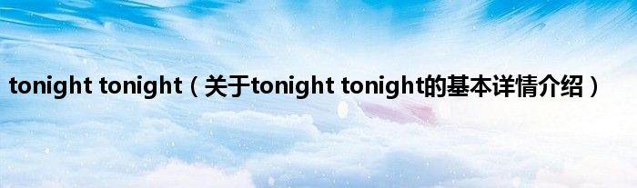 本文关于tonight tonight的基本详情介绍就讲解完毕,希望对大家有所帮助。