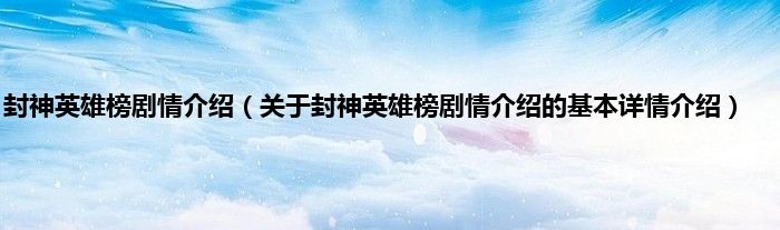 本文关于封神英雄榜剧情介绍的基本详情介绍就讲解完毕,希望对大家有所帮助。