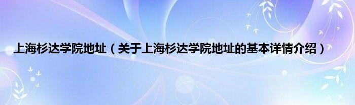本文关于上海杉达学院地址的基本详情介绍就讲解完毕,希望对大家有所帮助。