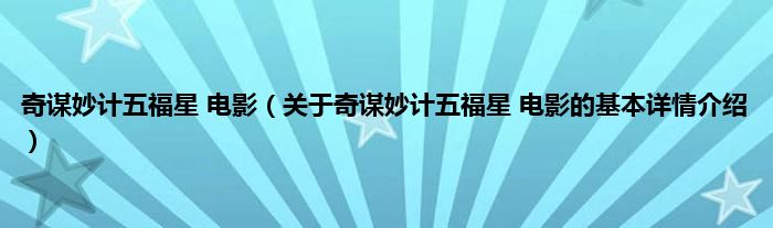 本文关于奇谋妙计五福星 电影的基本详情介绍就讲解完毕,希望对大家有所帮助。