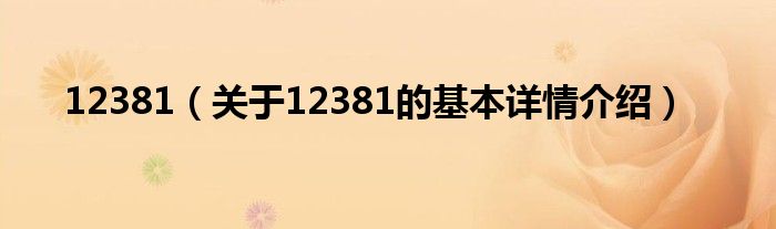 本文关于12381的基本详情介绍就讲解完毕,希望对大家有所帮助。