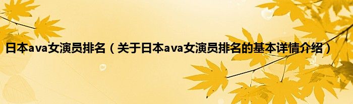 本文关于日本ava女演员排名的基本详情介绍就讲解完毕,希望对大家有所帮助。