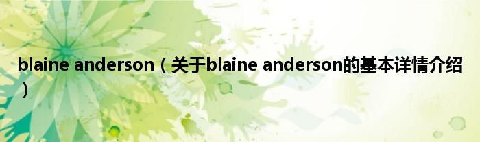 blaineanderson(关于blaineanderson的基本详情介绍)