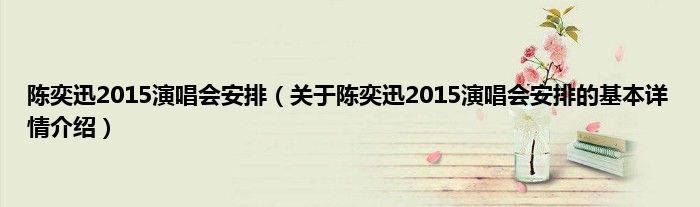 本文关于陈奕迅2015演唱会安排的基本详情介绍就讲解完毕,希望对大家有所帮助。