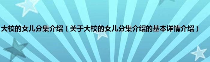 本文关于大校的女儿分集介绍的基本详情介绍就讲解完毕,希望对大家有所帮助。