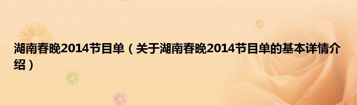 本文关于湖南春晚2014节目单的基本详情介绍就讲解完毕,希望对大家有所帮助。