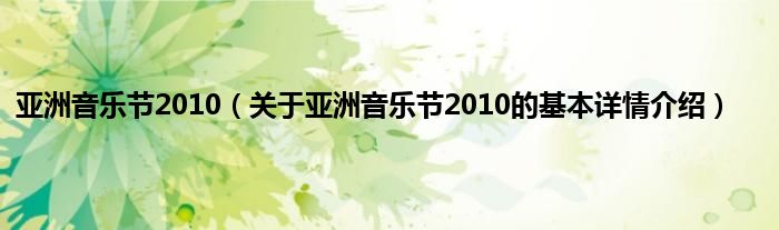 本文关于亚洲音乐节2010的基本详情介绍就讲解完毕,希望对大家有所帮助。