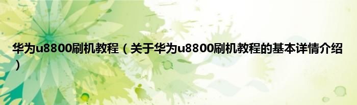本文关于华为u8800刷机教程的基本详情介绍就讲解完毕,希望对大家有所帮助。