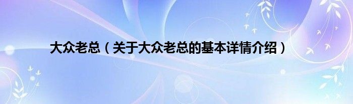 本文关于大众老总的基本详情介绍就讲解完毕,希望对大家有所帮助。