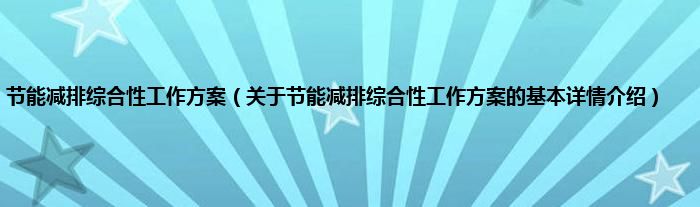 本文关于节能减排综合性工作方案的基本详情介绍就讲解完毕,希望对大家有所帮助。