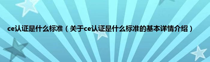 本文关于ce认证是什么标准的基本详情介绍就讲解完毕,希望对大家有所帮助。