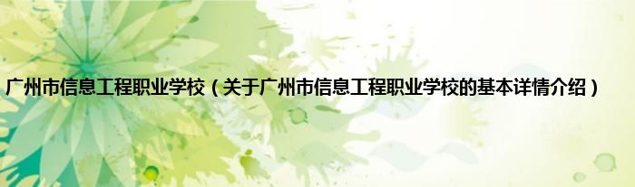 本文关于广州市信息工程职业学校的基本详情介绍就讲解完毕,希望对大家有所帮助。