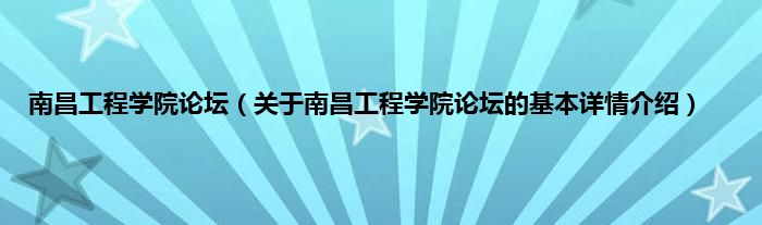 本文关于南昌工程学院论坛的基本详情介绍就讲解完毕,希望对大家有所帮助。