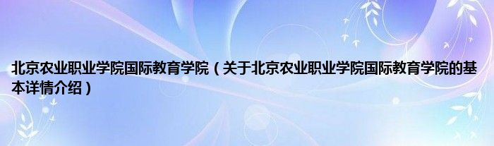 本文关于北京农业职业学院国际教育学院的基本详情介绍就讲解完毕,希望对大家有所帮助。