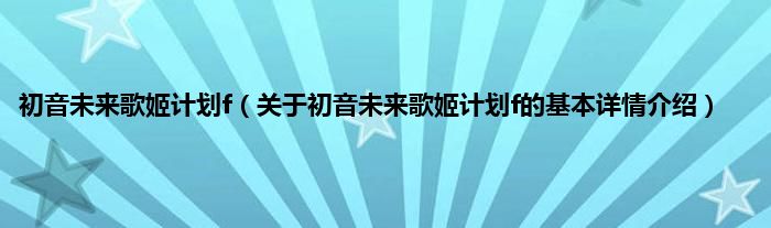 初音未来歌姬计划f(关于初音未来歌姬计划f的基本详情介绍)