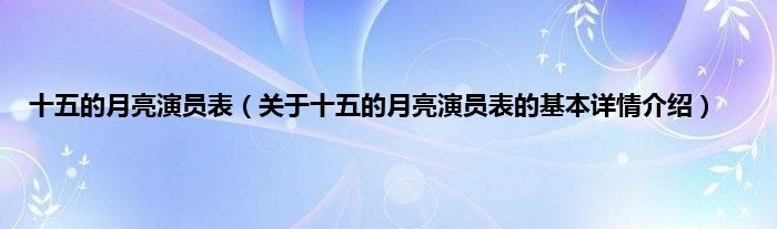 本文关于十五的月亮演员表的基本详情介绍就讲解完毕,希望对大家有所帮助。