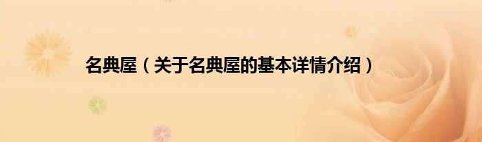 本文关于名典屋的基本详情介绍就讲解完毕,希望对大家有所帮助。