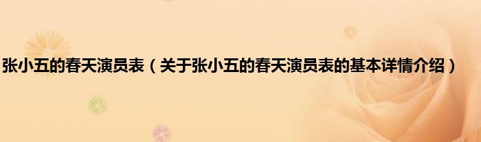 本文关于张小五的春天演员表的基本详情介绍就讲解完毕,希望对大家有所帮助。
