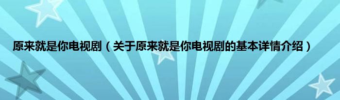 本文关于原来就是你电视剧的基本详情介绍就讲解完毕,希望对大家有所帮助。
