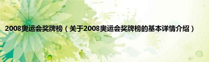 本文关于2008奥运会奖牌榜的基本详情介绍就讲解完毕,希望对大家有所帮助。