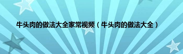 以上就是【牛头肉的做法大全家常视频,牛头肉的做法大全】相关内容。