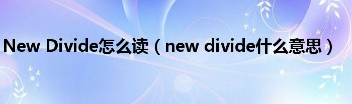 大家好,小问来为大家解答以上问题。New Divide怎么读,new divide什么意思这个很多人还不知道,现在让我们一起来看看吧!