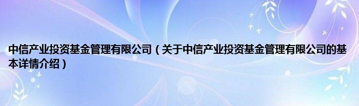 本文关于中信产业投资基金管理有限公司的基本详情介绍就讲解完毕,希望对大家有所帮助。