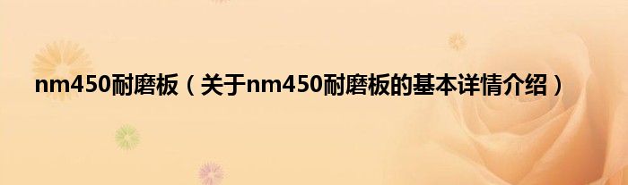 本文关于nm450耐磨板的基本详情介绍就讲解完毕,希望对大家有所帮助。