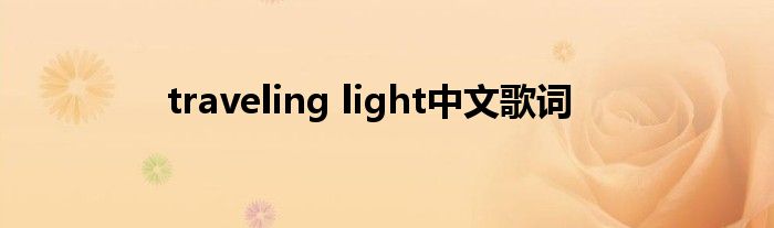 大家好,小问来为大家解答以上问题。traveling light中文歌词这个很多人还不知道,现在让我们一起来看看吧!