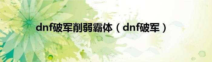 大家好,小问来为大家解答以上问题。dnf破军削弱霸体,dnf破军这个很多人还不知道,现在让我们一起来看看吧!