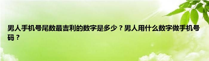 大家好,综合小编来为大家讲解下。男人手机号尾数最吉利的数字是多少?男人用什么数字做手机号码?这个很多人还不知道,现在让我们一起来看看吧!