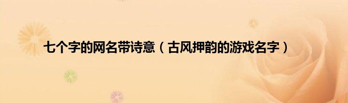 大家好,综合小编来为大家讲解下。七个字的网名带诗意,古风押韵的游戏名字这个很多人还不知道,现在让我们一起来看看吧!